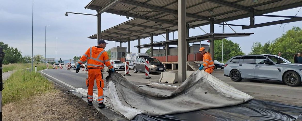 Die Mitarbeiter der Baudirektion wiederum errichteten im Burgenland 13 Seuchenteppiche an Landesstraßen-Grenzübergängen und in Kooperation mit der ASFINAG sieben Seuchenteppiche an den beiden Autobahngrenzübergängen Kittsee und Nickelsdorf. Betrieben wurden die Seuchenteppiche durch die Baudirektion und das Bundesheer.